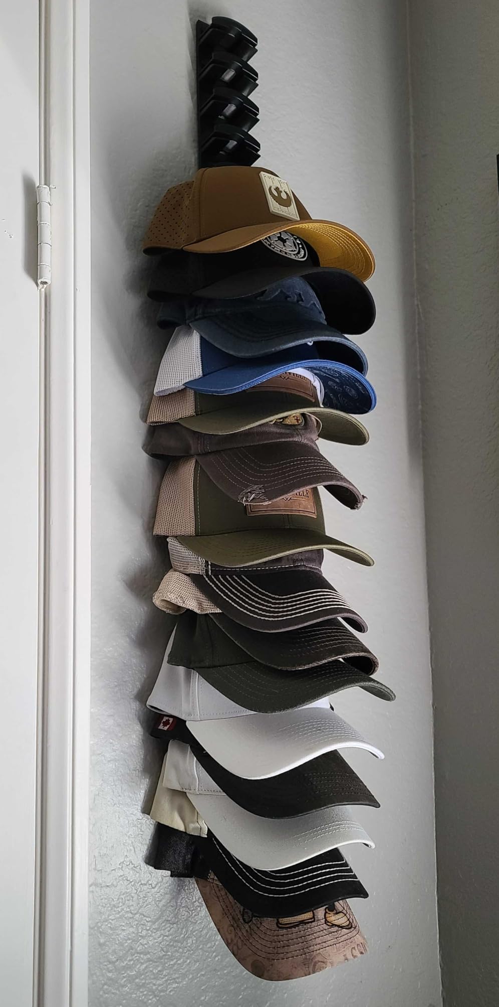🧺 Paket 2 Buah, Muat 20 Topi: Setiap set berisi dua organizer (masing-masing 10 topi). Hemat ruang di dinding, pintu, atau sisi lemari—tanpa berantakan.